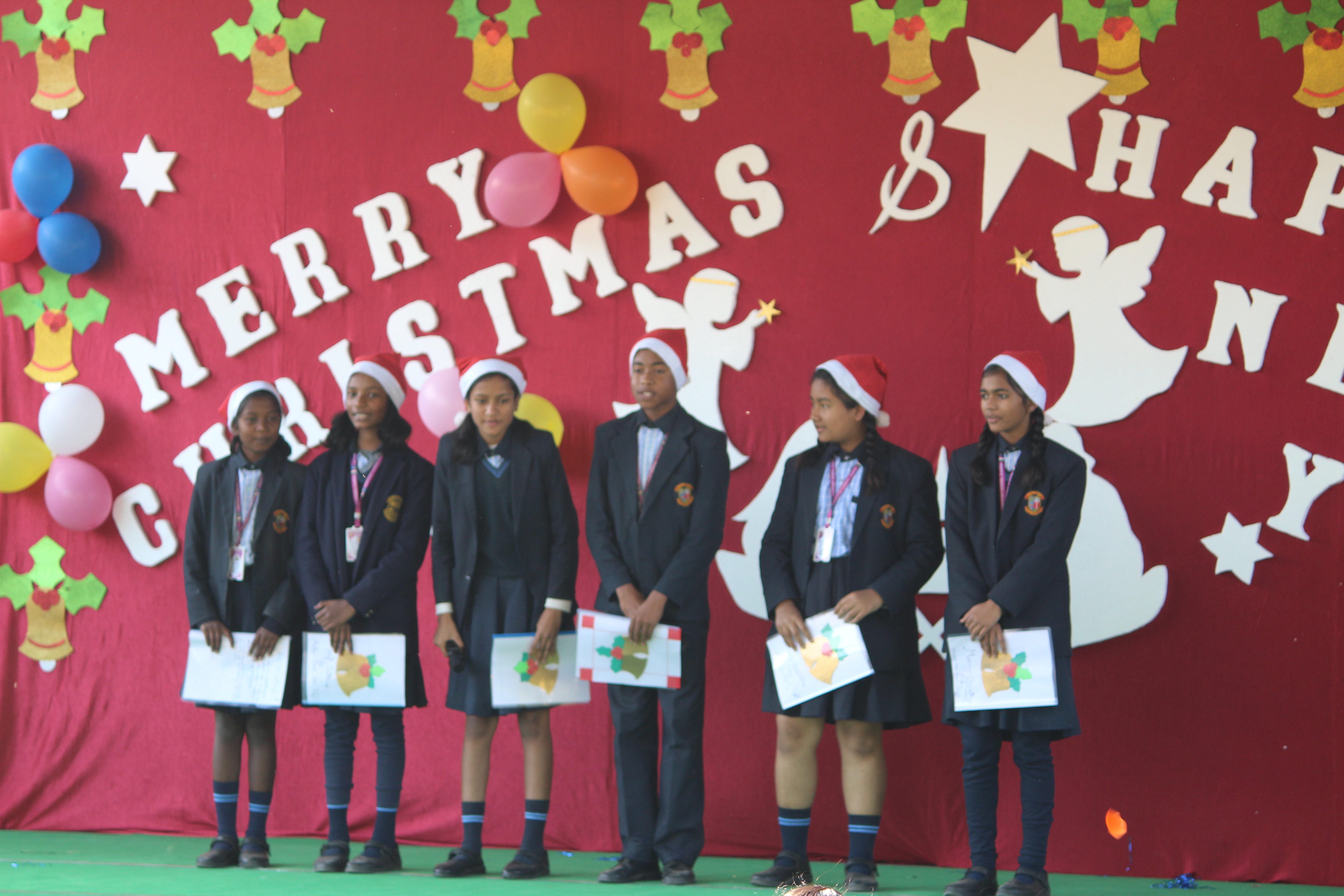 Santa too made a grand entry in the school auditorium with the chocolates. The delight was uncontained, especially as he brought out the gifts! The Crib and classrooms too had been decorated with bright and colourful bells, stockings and stars, created by the children in their craft class.